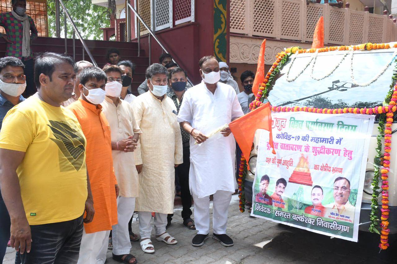 आगरा महापौर व छेत्रिय पार्षद अमित ग्वाला द्वारा हवन कर पूर्ण आहुति को छेत्र में सकारात्मक ऊर्जा भृमण हेतु रथ को किया रवाना