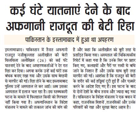 कई घंटे यातना देने के बाद अफगानी राजदूत की बेटी रिहा
