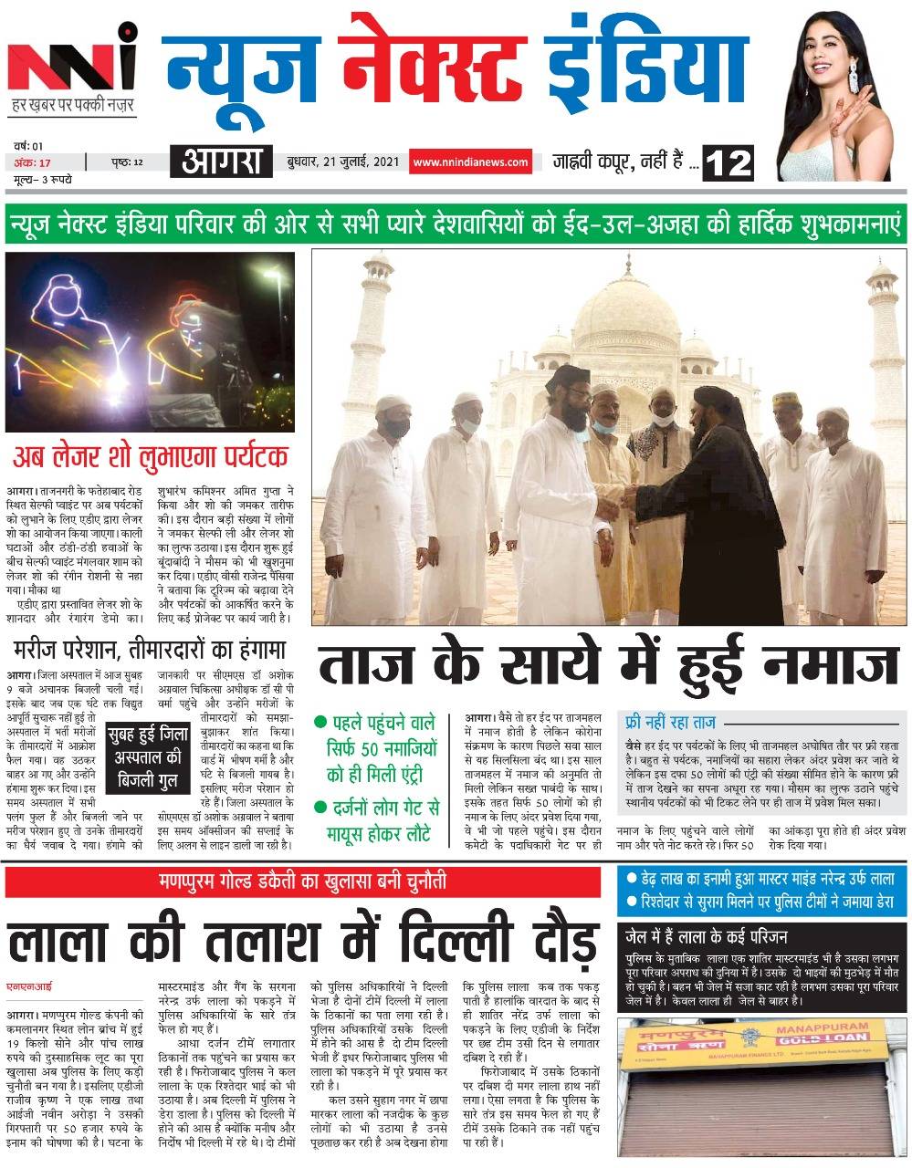 न्यूज़ नेक्स्ट इंडिया 21 जुलाई पेज 1